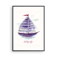 Affiche dans un cadre noir - Poster - Une aquarelle représentant un voilier sur l'eau avec une inscription délicate - 100x70cm - Plein de voiles et d’eau calme - Décoration murale moderne pour le salon et la chambre ARTTOR