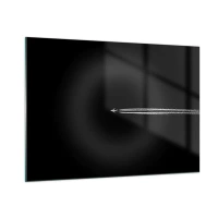 Impression sur verre - Image sur verre - Un avion à réaction sur fond noir avec une traînée de condensation - 100x70cm - Dans une autre dimension - Décoration murale moderne pour le salon et la chambre ARTTOR