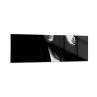 Impression sur verre - Image sur verre - Portrait élégant d'une femme en noir et blanc - 160x50cm - École de séduction - Décoration murale moderne pour le salon et la chambre ARTTOR