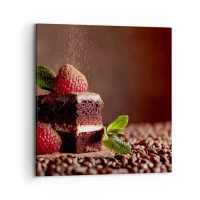Impression sur toile - Image sur toile - Gâteau au chocolat aux framboises et à la menthe sur fond de fèves de cacao - 100x70cm - La vie est douce - Décoration murale moderne pour le salon et la chambre ARTTOR