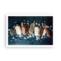 Affiche - Poster - Des glaces colorées disposées sur de la glace avec un fond sombre - 100x70cm - Le goût de l'été chaud - Décoration murale moderne pour le salon et la chambre ARTTOR