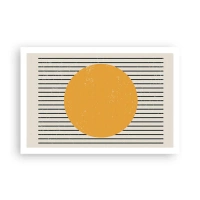 Affiche - Poster - Un cercle jaune sur un fond de lignes horizontales noires et blanches - 100x70cm - Le pouvoir de la simplicité - Décoration murale moderne pour le salon et la chambre ARTTOR