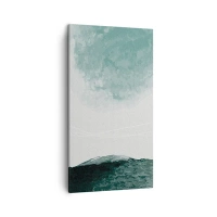 Impression sur toile - Image sur toile - Une délicate composition abstraite dans des tons de vert avec des formes subtiles sur un fond clair. - 120x50cm - Rencontre avec le brouillard - Décoration murale moderne pour le salon et la chambre ARTTOR