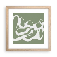 Affiche dans un cadre noir - Poster - Formes organiques en blanc sur fond vert - 100x70cm - L'appel de l'espace - Décoration murale moderne pour le salon et la chambre ARTTOR