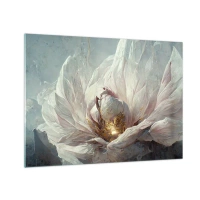Impression sur verre - Image sur verre - Une fleur épanouie dans des tons gris et or délicats - 70x50cm - Il fleurit une fois tous les cent ans - Décoration murale moderne pour le salon et la chambre ARTTOR