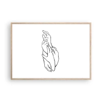 Affiche dans un cadre noir - Poster - Un croquis minimaliste de mains jointes dans un geste de délicatesse. - 100x70cm - Bon contact - Décoration murale moderne pour le salon et la chambre ARTTOR