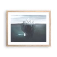 Affiche dans un cadre noir - Poster - Un iceberg dans l'eau avec un plongeur et un projecteur sous la surface. - 100x70cm - Mystère sous-marin - Décoration murale moderne pour le salon et la chambre ARTTOR