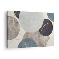 Impression sur toile - Image sur toile - Cercles géométriques dans les tons de gris, bleu et or - 70x50cm - Cercles sur cercles - Décoration murale moderne pour le salon et la chambre ARTTOR