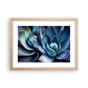 Affiche dans un cadre noir - Poster - Agave dans des tons de bleu et de vert avec des accents roses - 100x70cm - Force vital - Décoration murale moderne pour le salon et la chambre ARTTOR