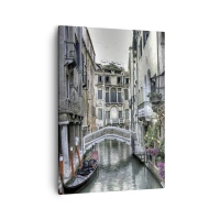 Impression sur toile - Image sur toile - Canal vénitien avec gondole et pont de pierre - 50x70cm - Pendant des siècles dans une réflexion silencieuse - Décoration murale moderne pour le salon et la chambre ARTTOR