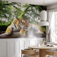 Papier Peint Photo Standard Eco - Un tigre se reposant dans une jungle tropicale dense - 100x70cm - Cordialement - Décoration murale moderne pour le salon et la chambre ARTTOR