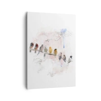Impression sur toile - Image sur toile - Oiseaux colorés sur une branche dans un style aquarelle - 50x70cm - Rencontre ailée - Décoration murale moderne pour le salon et la chambre ARTTOR