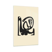 Impression sur verre - Image sur verre - Une figure abstraite en noir sur fond beige - 70x100cm - Presque du Picasso - Décoration murale moderne pour le salon et la chambre ARTTOR
