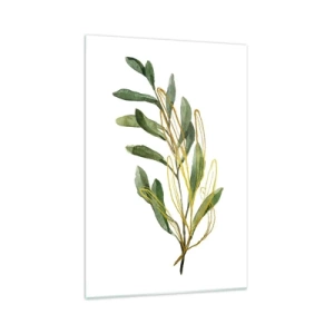 Impression sur verre - Image sur verre - Branche verte avec des feuilles sur fond blanc - 70x100cm - Tout ce qui est bon - Décoration murale moderne pour le salon et la chambre ARTTOR