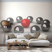Papier Peint Photo Standard Eco - Un cercle en argent et rouge - Abstraction, 3D, Boules rondes - 500x350 cm