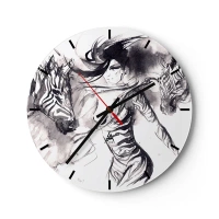 Horloge murale - Pendule murale - Une femme dans une danse dynamique avec des zèbres dans une esthétique noir et blanc - 30x30cm - Danse avec les zèbres - Décoration murale moderne pour le salon et la chambre ARTTOR