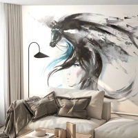 Papier Peint Photo Standard Eco - Galop du prince noir - Animaux, Cheval, Graphique - 150x105 cm