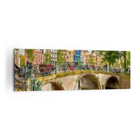 Impression sur toile - Image sur toile - Un canal pittoresque avec un pont à Amsterdam - 160x50cm - Le printemps sur le canal - Décoration murale moderne pour le salon et la chambre ARTTOR