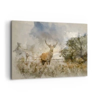 Impression sur toile - Image sur toile - Un cerf dans un cadre naturel dans un style aquarelle - 120x80cm - Dignité - force - majesté - Décoration murale moderne pour le salon et la chambre ARTTOR