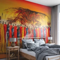 Papier Peint Photo Premium Canvas - Là-bas, là-bas, ils vont là-bas - Morceau, Personnes, Afrique - 450x315 cm