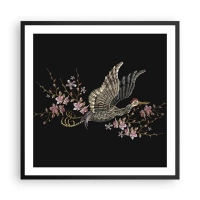 Affiche dans un cadre noir - Poster - Oiseau brodé exotique - 60x60 cm