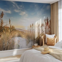 Papier Peint Photo Standard Eco - Plage au coucher du soleil avec herbe et sable - 100x70cm - Plage du nord - Décoration murale moderne pour le salon et la chambre ARTTOR