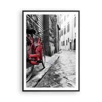 Impression sur toile - Image sur toile - Vélo rouge dans une rue en noir et blanc - 70x100cm - La vraie beauté ne vieillit pas - Décoration murale moderne pour le salon et la chambre ARTTOR