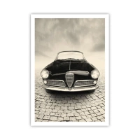 Impression sur toile - Image sur toile - Une voiture classique sur une place pavée dans un style monochrome - 70x100cm - Et alors! Tu ne m'aime pas? - Décoration murale moderne pour le salon et la chambre ARTTOR