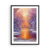 Affiche - Poster - Paysage d'hiver avec un pont et le soleil couchant reflété dans la rivière - 50x70cm - On se rencontre ici - Décoration murale moderne pour le salon et la chambre ARTTOR