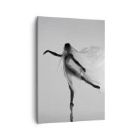 Impression sur toile - Image sur toile - Une danseuse dans une pose éthérée avec un tissu fluide - 50x70cm - Légèreté et grâce - Décoration murale moderne pour le salon et la chambre ARTTOR