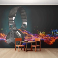 Papier peint sur mesure Standard Eco - Dans le feu de la musique - Abstraction, Musique, Écouteurs