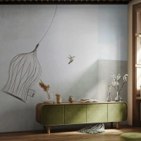 Papier Peint Photo Standard Eco - Dans son élément - Abstraction, Oiseau, Cage à oiseaux - 250x175 cm