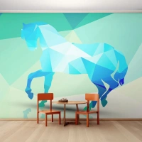 Papier Peint Photo Standard Eco - Cheval géométrique en turquoise - Animaux, Cheval, Figure géométrique - 250x175 cm