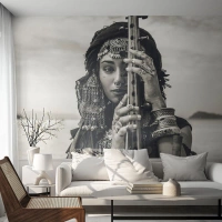 Papier Peint Photo Premium Canvas - Portrait d'une femme en bijoux ethniques tenant un instrument à la main - 100x70cm - Musique de l'Orient elle-même - Décoration murale moderne pour le salon et la chambre ARTTOR