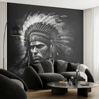 Papier Peint Autocollant Deluxe Sticker - Un leader et un guerrier - Indien, Tribus, Ethnique - 350x256 cm