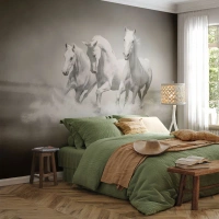Papier Peint Photo Premium Sand - La folie blanche - Animaux, Les chevaux, Nature - 400x280 cm