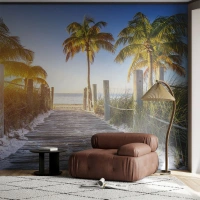 Papier Peint Autocollant Deluxe Sticker - Directement au paradis - Paysage, Cocotier, Plage - 500x350 cm