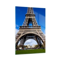 Impression sur verre - Image sur verre - La Tour Eiffel contre un ciel bleu - 50x70cm - Tout Paris à ses pieds - Décoration murale moderne pour le salon et la chambre ARTTOR