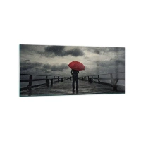 Impression sur verre - Image sur verre - Une personne avec un parapluie rouge sur une jetée pluvieuse - 120x50cm - Peu importe qu'il pleuve - Décoration murale moderne pour le salon et la chambre ARTTOR