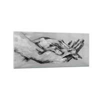 Impression sur verre - Image sur verre - Une composition en noir et blanc de deux mains jointes sur un fond clair. - 120x50cm - Début... - Décoration murale moderne pour le salon et la chambre ARTTOR