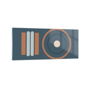 Impression sur verre - Image sur verre - Une composition géométrique avec des cercles et des rectangles aux couleurs sobres. - 120x50cm - Essence des choses - Décoration murale moderne pour le salon et la chambre ARTTOR
