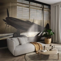 Papier Peint Photo Standard Eco - Le repos du guerrier - Avion, Hangar d'aviation, Avion - 400x280 cm