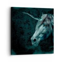 Impression sur toile - Image sur toile - Une licorne magique dans une forêt mystérieuse et sombre aux couleurs fantastiques. - 50x70cm - Dans une forêt de conte de fées - Décoration murale moderne pour le salon et la chambre ARTTOR