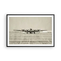 Affiche dans un cadre noir - Poster - Avion historique à l'aéroport en sépia - 100x70cm - Toujours prêt! - Décoration murale moderne pour le salon et la chambre ARTTOR