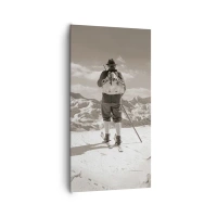 Impression sur verre - Image sur verre - Un skieur au sommet d'une montagne en noir et blanc - 80x120cm - Toutes les mêmes ces montagnes - Décoration murale moderne pour le salon et la chambre ARTTOR