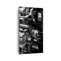 Impression sur toile - Image sur toile - Gros plan de pièces de moteur en métal sur fond noir - 80x120cm - Acier, beau, fort - Décoration murale moderne pour le salon et la chambre ARTTOR