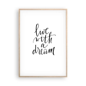 Impression sur verre - Image sur verre - Une peinture minimaliste avec les mots « vivre avec un rêve » en noir sur fond blanc. - 80x120cm - Bien sur - Décoration murale moderne pour le salon et la chambre ARTTOR