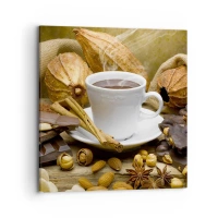 Impression sur toile - Image sur toile - Une tasse de chocolat chaud entourée de cacao et de cannelle - 80x120cm - Pour les amateurs de sensations fortes - Décoration murale moderne pour le salon et la chambre ARTTOR