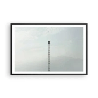 Affiche dans un cadre noir - Poster - Un homme sur une échelle s'élevant vers le ciel - 100x70cm - Se soulever au-dessus - Décoration murale moderne pour le salon et la chambre ARTTOR