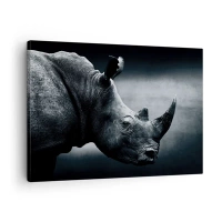 Impression sur toile - Image sur toile - Portrait noir et blanc d'un rhinocéros sur fond sombre - 70x50cm - Le profil droit - Décoration murale moderne pour le salon et la chambre ARTTOR